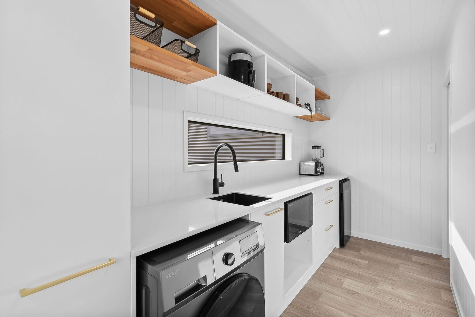 Paredes internas: painéis resistentes à umidade; madeira