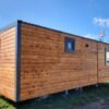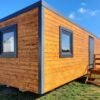 Dimensions: 10 m × 3,8 m × 3,2 m (38 m2) Nombre de pièces: 2 chambres Isolation murale-laine de roche (10 cm) Isolation des sols et plafonds-laine de roche (15 cm) Double vitrage Plafond à joints verticaux Murs intérieurs: panneaux résistants à l’humidité; Câblage et éclairage Système d’eau et d’égouts Système de ventilation Ventilation mécanique dans la salle de bain Portes intérieures Éclairage intérieur: Éclairage LED dans chaque pièce Climatisation avec fonction de chauffage